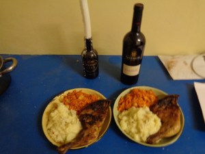 Roasted chicken, garlic & chili pepper mash, carrot salad